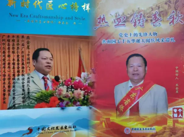 【巫金星简介】巫金星,广东丰顺人,中国好人,“中国好人”公益团队负责人,中国诚信楷模人物、中国服务贸易协会信用工作委员会智库专家、中国民营科技实业家协会高新技术产业分会智库专家、中国民营科技实业家协会乡村产业振兴工作委员会智库专家、乡村振兴公益慈善大使、梅州市海外联谊会荣誉会长、广州市赵广军生命热线协会荣誉会长、丰顺县博爱慈善协会、丰顺县助学会永久荣誉会长、丰顺县侨联、丰顺县工商联总商会荣誉主席、丰顺县老干部(老年)大学名誉校长、丰顺县平阳学校荣誉校长、丰顺合山希望学校荣誉校长、中华爱国国典理事会副理事长。