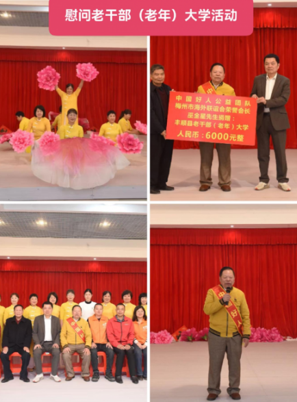 当天下午,巫金星等人还慰问了县电视台、县老干部(老年)大学、金湖村委会、县助学会等单位,并进行座谈交流,本次慰问活动共计发出慰问金、慰问物品达10多万元。本次参与慰问团队的单位及成员有:丰顺县人民政府副县长罗灏同志,县、镇民政干部,县侨联,县工商联总商会,县融媒体中心,县博爱慈善服务协会高永洲会长、县助学会陈茂葵会长等负责人。