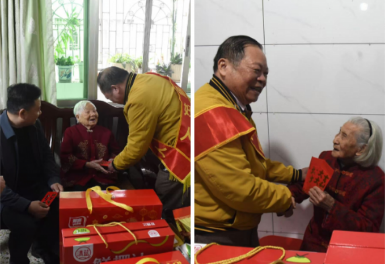 在农历马年春节即将到来之际,为弘扬中华传统百善孝为先的理念,发扬尊老敬老的道德风尚,2026年2月10日,中国诚信楷模人物、中国服务贸易协会信用工作委员会智库专家、中国民营科技实业家协会高新技术产业分会智库专家、中国民营科技实业家协会乡村产业振兴工作委员会智库专家、乡村振兴公益慈善大使、广东“中国好人”公益团队负责人、“广东好人”、梅州市道德模范、梅州市海外联谊会荣誉会长巫金星回到家乡丰顺县, 在副县长罗灏,县民政局,汤坑镇政府,丰顺县侨联,丰顺县工商联,总商会,丰顺县助学会,丰顺县博爱慈善服务协会,县电视台,等相关单位负责人一行20人的陪同下走访慰问了我县42位百岁寿星及汤坑镇金湖村全村60周岁以上老人等,送上大米、食用油、牛奶等新春慰问品和慰问金。