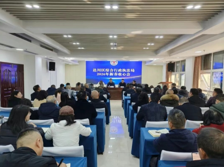 本网四川达州讯(杜靖宇 观理 报道)2月24日,达川区综合行政执法局召开2026年新春收心会。党组书记、局长周跃文主持会议并讲话。局领导班子成员,机关全体干部职工,直属单位主要负责人及办公室主任参加会议。
