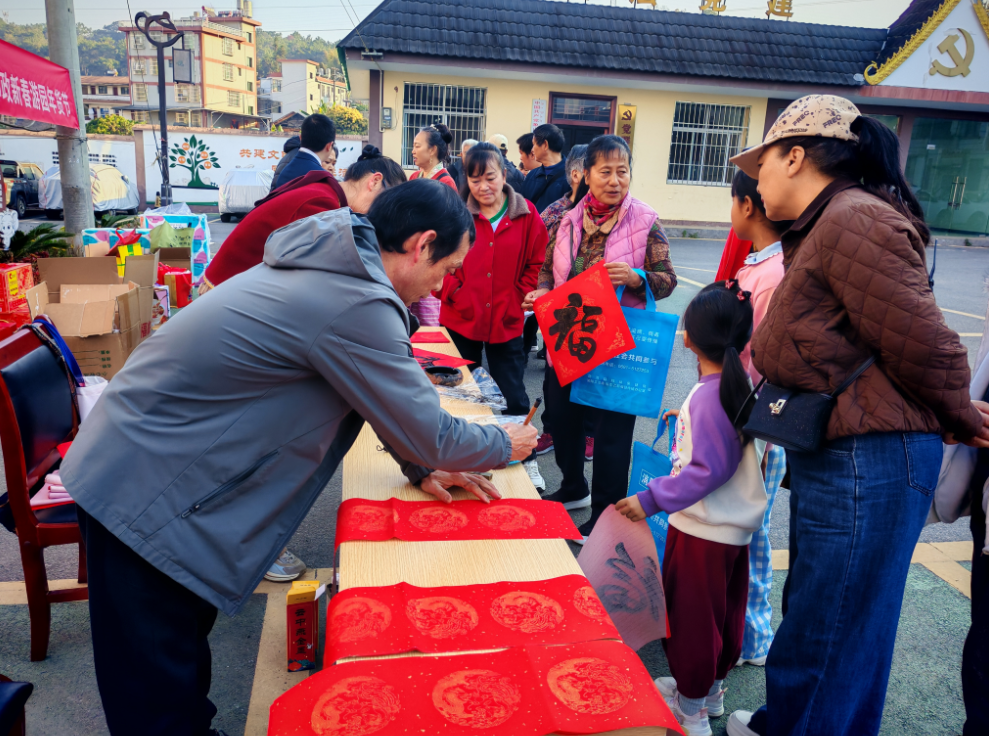 写春联、贴春联是新春不可或缺的习俗,大红春联承载着人们对新年的期盼。活动现场布置书法创作区,备好笔墨纸砚,特邀社区书法爱好者和艺人现场挥毫。艺人们笔走龙蛇,楷书刚劲、行书飘逸、隶书古朴,一幅幅吉祥春联、一个个遒劲福字跃然纸上,引得居民驻足称赞。现场还为居民提供笔墨,无论孩童老人,都能亲手书写春联,在笔墨间感受书法魅力,将美好期许化作笔下丹青,让墨香祝福陪伴新春,让传统年俗在手写温度中焕发生机。