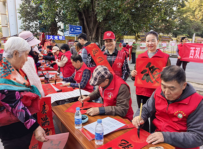 “老年大学的老师写得好、送得暖,年味更足了!”“志愿服务很贴心,让我们感受到西双版纳的温暖与热情。”......无论是在州机关事务服务中心、州司法局、州强制隔离戒毒所、景洪市科协等机关单位,还是在景洪市景哈乡人民政府、州社会福利院、太平洋保险公司西双版纳中心支公司,或是在允景洪街道孔雀湖社区、新时代文明实践中心、泼水广场等人流聚集地,都能听到大家的点赞。活动中,银发志愿者们有的挥毫泼墨,书写一幅幅寓意吉祥的春联和“福”字;有的则把春联和“福”字送到群众和游客手中。活动现场,年味十足,大家一边交流春联内容的寓意,一边赞叹中华优秀传统文化的魅力。