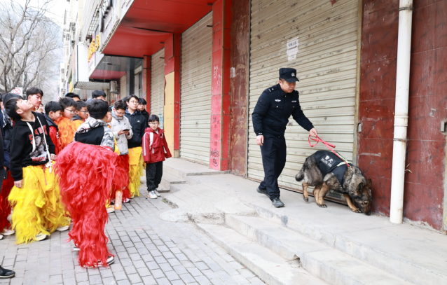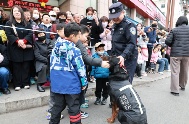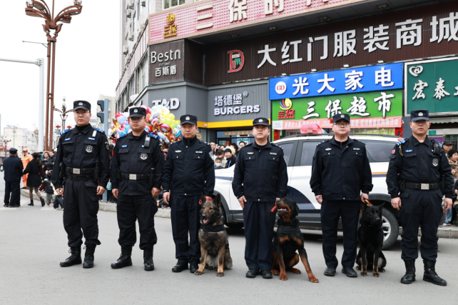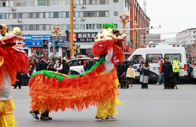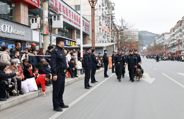 热闹喜庆的社火展演现场,“无言战友”走出训练场,与群众亲切互动,无形中拉近了警民距离,让更多人感受到警营的温度与力量。训导员带领警犬穿梭在人群中,忠诚守护成为一道坚实而温暖的风景线。现场,藏蓝身影与硬核警力并肩作战,从严从细落实各项安全排查措施,织密筑牢了一张立体的安全防护网。