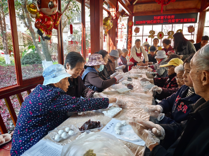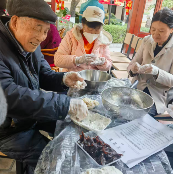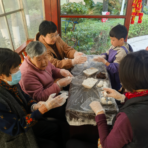 工作人员穿梭在长廊里,为老同志添馅递水、嘘寒问暖。不少家属也带着孩子赶来参加,有的推着轮椅陪老人晒太阳,有的手把手教孙子孙女包汤圆。一位老党员的女儿说:“平时工作忙,很少有机会陪老人好好过节。今天带着孩子一起来,既能陪陪老人,又能让孩子听听过去的故事,特别好。”