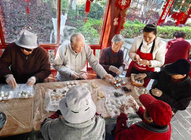 活动现场,副所长特意带来了大字版的学习材料,趁着大家包汤圆的间隙,简要领学了党的二十届四中全会关于国防和军队现代化建设的有关精神。老同志们一边包汤圆一边听,不时点头交流。大家表示,虽然年纪大了、腿脚不便,但心里一直惦记着国家大事,看到军队发展越来越好,打心底里高兴。