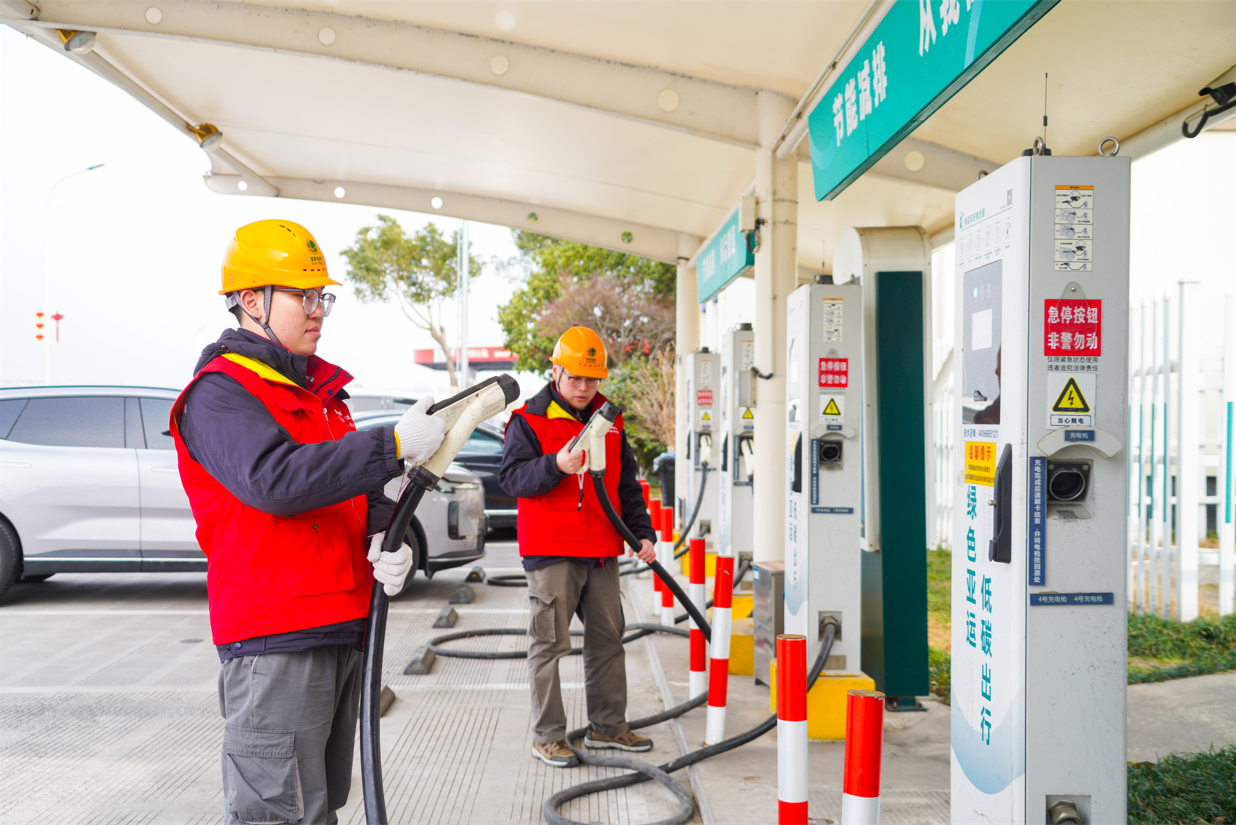 新能源出行保障是春运保电的重点之一。在高铁站、客运中心充电站,红船共产党员服务队队员对充电桩机体、接口、消防设施及配套箱变展开特巡,及时排查并协助处理隐患,确保电动公交及社会车辆“能量满满”,让绿色归途亦能畅行无阻。
