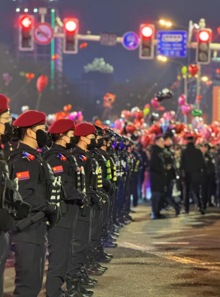 节假日的繁华街区,亟需不间断的平安守护。正定古城、湾里庙步行街、各大核心商圈,人流密集处都能看见她们挺拔身影:全副武装、肩灯闪烁,穿梭于人流中,既是贴心服务的“勤务员”,也是维护秩序的“守护者”。