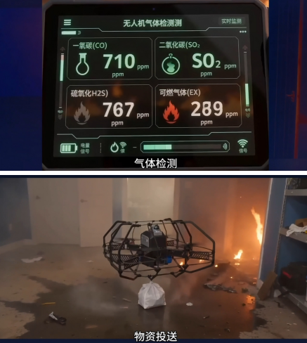 通过该无人机,消防指挥部可实时获取火场内部结构、火势蔓延趋势、人员被困位置等关键信息,实现“看得见、看得清、判得准”,有效解决了地下与室内火场视线受阻、救援难度大、消防人员安全风险高的痛点。