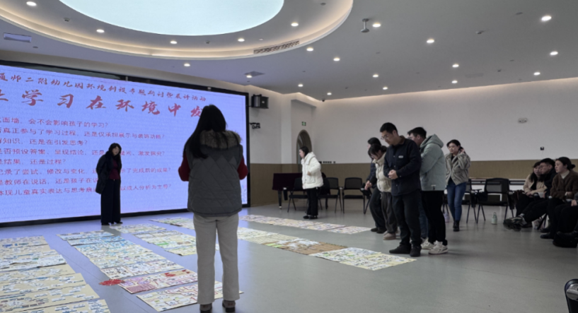 本网江苏讯(通讯员 邵敏 张宇 吉荟颖 陈澄 殷翅)2026 年新学期伊始,江苏省基础教育内涵建设项目校通师二附幼儿园以一场别开生面的主题环境沉浸式研讨,开启了新学期教研工作。幼儿园打破传统教研模式,将上学期所有主题环境相关材料悉数 “拆解”,照片、记录单、幼儿作品、问题卡片、活动轨迹等一一铺陈,以层层追问的方式,带领全体教师重新审视环境的教育价值,推动幼儿园环境创设从 “展示墙” 向 “学习场” 深度转型,让学习真正在环境中自然发生。