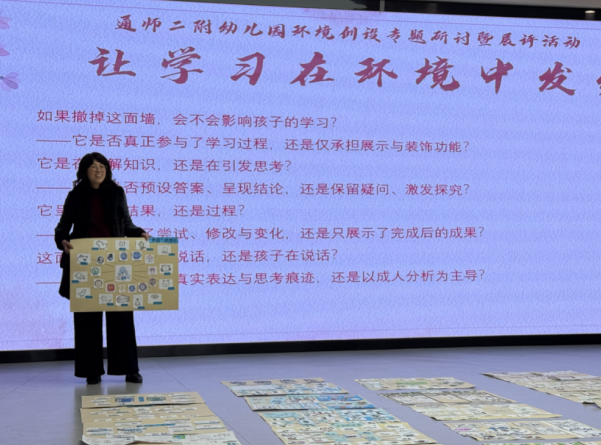 此次沉浸式研讨,不仅是通师二附幼儿园对主题环境创设的一次深度诊断与重构,更是对省基础教育内涵建设项目理念的扎实落地。通过层层追问,全体教师深刻意识到,幼儿园的环境从来不是简单的装饰,也不是课程的总结展示,而是课程结构的重要组成部分,是幼儿经验生长的现场,是问题生成的重要载体。当环境真正从 “展示墙” 转向 “学习场”,当问题取代结论,当儿童语言覆盖成人说明,学习便会在环境中真实、自然地发生。这场新学期的 “第一研”,成为通师二附幼儿园深化环境育人理念的新起点,幼儿园将以此次研讨为契机,以儿童立场为核心,让每一处环境都成为孩子学习、探究、成长的沃土,让环境真正成为孩子的 “第三位教师”。