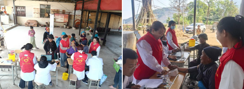 聚焦健康守护,爱心义诊送上门。乡卫生院联合党员干部、青年志愿者组建健康服务队,在曼果村集中开展“爱心义诊”志愿服务,免费为村民测量血压、提供健康咨询,积极号召妇女主动参与“两癌”筛查,切实提升群众健康防护意识。针对行动不便的老年群体,志愿者与医护人员上门提供送检服务、办理家庭医生签约,用贴心服务打通健康服务“最后一公里”,筑牢群众健康安全防线。