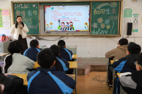 本网湖南讯(通讯员 吴杭瑀 张小玲)春启新程,策马扬鞭。3月5日,湖南省邵东市城区第二完全小学围绕“策马新学期,筑梦向未来”主题,开展2026年春季学期“开学第一课”,融爱国教育、文明礼仪、安全教育、成长引导于一体,激励全体学子以昂扬姿态开启新学期,奔赴幸福而完整的教育生活。