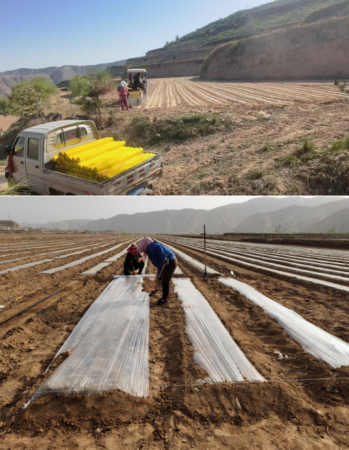 榆中,地处兰州东部,干旱少雨、昼夜温差大的气候特质,让地膜成为农业生产的“刚需”。全膜双垄沟播技术在这里落地生根,保墒、增温、抑草、稳产,一卷地膜撑起的是百万亩农田的希望,维系的是千家万户的“米袋子”“菜篮子”。从冬小麦返青到玉米、马铃薯备播,从高原夏菜育苗到特色作物定植,地膜覆盖技术贯穿春耕全程,是稳产增收的关键一环。