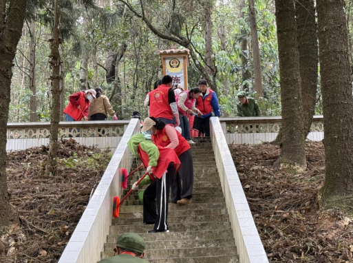 活动现场,志愿者队伍立足“维护红色阵地、缅怀革命先烈”核心目标,自带扫帚、水桶、抹布等清洁工具,对烈士纪念碑及周边区域开展全方位清洁整治工作。志愿者们明确分工、协同配合,重点对碑体周边杂草、枯叶、生活垃圾进行集中清扫,对纪念碑碑身、基座进行细致擦拭,全面清除卫生死角,确保烈士纪念碑及周边环境整洁有序。此次清洁工作,不仅改善了红色阵地的环境面貌,更以严谨务实的行动,践行了对革命先烈的缅怀与致敬,彰显了退役军人“退伍不褪色、退役不退志”的优良作风。