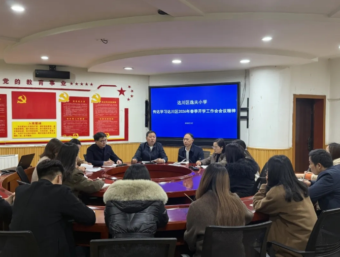 为确保新学期各项工作平稳、有序、高效地开展,2026年3月1日至2日,达川区逸夫小学分别召开了行政会和全体教职工大会。会上,各部门分管领导围绕校园安全、教学教研、后勤保障、纪律意识等重点工作,逐项细化部署,为新学期各项工作落地见效筑牢基础。