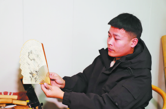 “老手艺不能守旧,要在传承中精进。”刘乃鹤坦言,初期制作的折扇工艺偏粗糙,与文人雅物的精致标准尚有差距。为让传统技艺重焕光彩,2022年,他循着祖辈足迹专程赴天津深造,历时3个月潜心学艺,系统研习选料、造型、打磨、烫钉等核心工艺。学成归来后,他制作的折扇骨洁如玉,造型灵动,扇面韵味十足,既保留曹州本土特色,又兼具津派制扇的精细雅致,实现了技艺质的提升。
