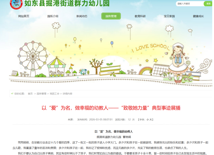 本网江苏讯(通讯员 丁香)在第 116 个 “三八” 国际妇女节到来之际,为丰富女教职工精神文化生活,提升法律意识与自我保健能力,营造温馨和谐、积极向上的节日氛围,江苏省如东县掘港街道群力幼儿园开展“实干开新局 巾帼绽芳华”主题纪念活动。