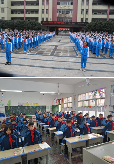 上午9时28分,开学典礼在庄严的升旗仪式中拉开帷幕。南门广场主会场的师生肃立,注视着崭新的国旗冉冉升起,各教室内的师生也通过直播画面同步参与,激昂的国歌声在校园的每一个角落回荡。