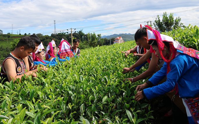 当下恰逢春茶采摘黄金期,春雨过后的茶树吐露新芽,鲜嫩的茶芽铺满茶山,成为春日里最动人的风景。“趁着节令好,咱们赶紧把这波‘雨前茶’采完,今年的收入肯定差不了!”茶园里,党员干部们一边娴熟地掐摘茶芽,一边与身边群众拉家常、话发展。他们身着民族着装,穿梭在翠绿的茶垄间,动作娴熟、干劲十足,与翠绿的茶园相映成趣,构成一幅生动的“干群同心抢农时、携手奋进促增收”画卷。从茶芽采摘的技巧,到茶叶管护的要点,再到今年的增收计划,党员干部们把政策宣讲、民生关怀融入劳作之中,用实际行动拉近与群众的距离,凝聚起乡村振兴的强大合力。