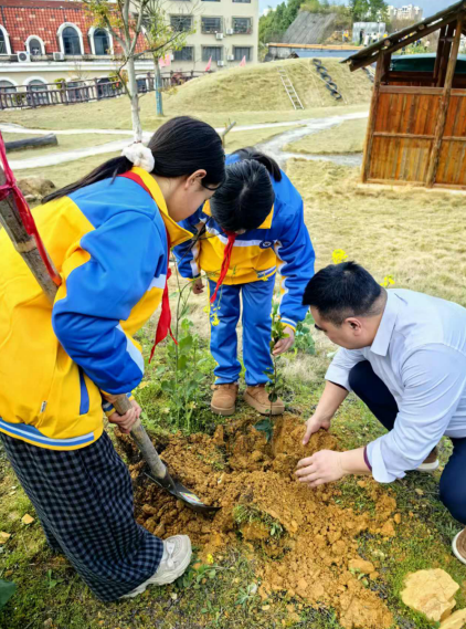 此次活动不仅增强了师生爱绿护绿意识,更通过“党建带队建”的形式,让雷锋精神的种子在孩子们心中生根发芽。活动在全体人员与党旗、队旗、新苗的同框合影中圆满结束。