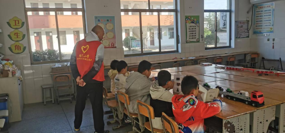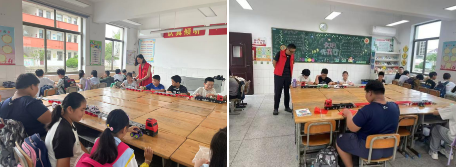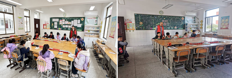 这处温暖的 “行知室”,由学校闲置教室改造而来,如今已焕然一新。室内配齐书橱、桌椅、棋盘和车船模型等设施,图书角里整齐摆放着从绘本到名著的各类书籍,适配各年级学生的阅读需求。党员教师们不仅是校门口的安全守护者,更是 “行知室” 里的陪伴者与引路人,他们在维持秩序的同时,精心组织学生开展晨读、课外阅读等活动,让孩子们的晨间等待不再枯燥,成为一天学习的美好开端。五年级学生兴奋地向值班党员分享《中国民间故事》的读书心得,党员教师温柔鼓励并引导其向同学推荐,这样温暖的互动,每天都在 “行知室” 里上演。