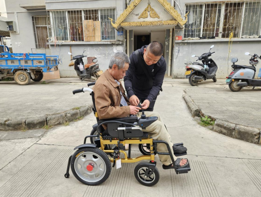 社区党总支书记、居委会主任教居民使用电动轮椅