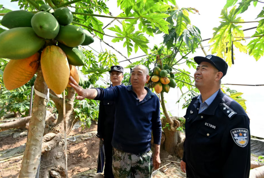 坚持生态与治安“双守护”,护航绿色发展。民辅警在基地走访时,同步排查温室大棚用电安全、废弃物处理等情况,提醒种植户、企业规范使用农资、妥善处理种植废弃物,守护基地周边生态环境,同时加大基地及周边巡逻力度,防范作物被盗、设施被破坏等情况,全力守护农户的劳动成果。