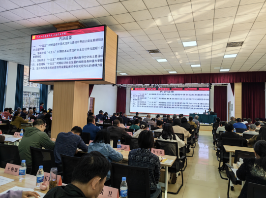 讲座上,欧黎明教授以《全面深刻准确领会和把握党的二十届四中全会精神 在中国式现代化进程中开创云南发展新局面》为题,结合省委十一届九次全会、省“两会”精神,系统梳理了“十五五”时期是在中国式现代化进程中开创云南发展新局面的关键时期、准确把握“十五五”时期在基本实现社会主义现代化进程中的重要地位、深刻领会“十五五”时期经济社会发展的指导方针和主要目标等内容,全面解读了“十五五”时期塑造云南发展新优势的重大战略任务和重大举措,并着重阐述了坚持和加强党的全面领导的核心作用。