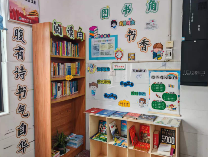 全体师生群策群力精心布置图书角,营造了各具特色的班级阅读文化。图书角的图书种类丰富、涉及学科广泛、质量优良,内容的积极向上。各班都制定了完善的图书管理制度,制做了电子版图书目录并打印存档,实现了图书管理的规范化和数字化。