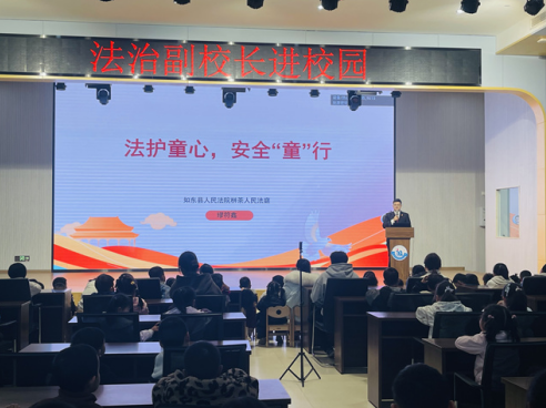 法治进校园,为童心系好 “安全安全带”。幼儿园法治副校长、栟茶镇法庭法官助理缪符鑫走进校园,为孩子们带来了一堂生动有趣的安全普法课。结合幼儿的年龄认知特点,缪符鑫用童趣化的语言解读法律的基本意义,讲解身边易懂的法律常识,同时借助趣味漫画和真实生活实例,细致剖析拐卖侵害等幼儿身边的安全隐患,引导孩子们学会识别危险、保护自己。课堂上,孩子们认真聆听、积极互动,在轻松愉悦的氛围中树立起基本的法治意识和自我保护观念,法治的 “保护伞” 为幼儿成长筑牢第一道防线。