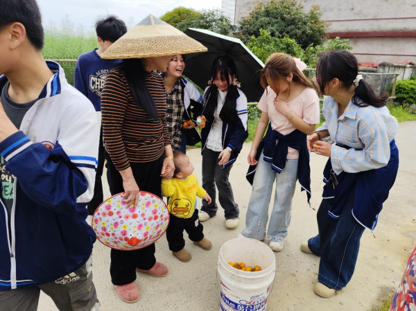 沿途的温情处处涌动,村里的农户主动走上前来,将清甜的橘子分递给孩子们,朴实的关爱让师生倍感温暖。路过的村民们纷纷驻足点赞,对学校组织这样有意义的实践活动连连称赞,眼神里满是认可与支持 。从正午到午后,历经5小时的徒步,师生们以坚韧不拔的毅力,圆满完成往返征程,用脚步书写了新时代少年的担当 。