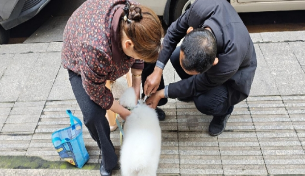 活动现场,设置了登记区、体检区、接种区、留观区,流程清晰有序。居民们牵着自家爱犬,在工作人员的引导下,依次完成信息登记、犬只健康检查、疫苗接种等环节。专业兽医仔细为每一只犬只进行健康排查,确认无禁忌症后规范接种疫苗,详细告知养犬居民疫苗接种后的注意事项,叮嘱后续按时完成加强免疫,现场建立犬只免疫台账,做到“一犬一档、应免尽免”。同时,工作人员同步普及狂犬病防控知识,讲解犬只接种疫苗的重要性、被犬猫抓伤咬伤后的应急处理方法,让居民充分认识到狂犬病可防可控的关键在于科学防疫。同时向居民宣传文明养犬相关规定,倡导大家外出遛狗牵好犬绳、及时清理犬只粪便、主动办理养犬登记证,自觉遵守公共秩序,爱护公共环境。