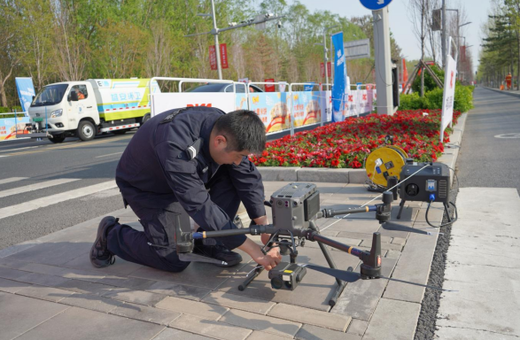 空中,多架警用无人机全域巡航、实时回传高清画面,实现赛道全覆盖巡查与动态预警,通过空中语音广播及时疏导人流、快速处置突发情况;地面,依托智能交通管控平台,对赛道周边车流、人流进行全程实时监测,根据赛事进程分时分段精准解除交通管制,科学设置非机动车与行人临时穿越点,最大限度降低临时管控对群众日常出行的影响。