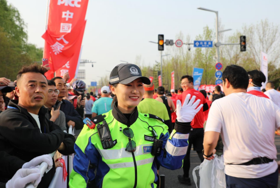 比赛中,执勤民警及时救助多名身体不适的参赛选手,协助医护人员转运伤员,帮助跑者找回手机、背包等遗失物品,为外地参赛选手和观赛群众耐心指引路线、解答疑问。