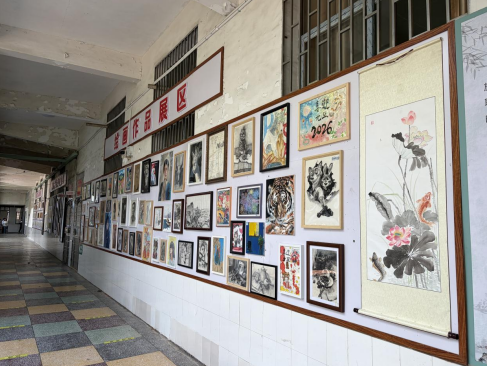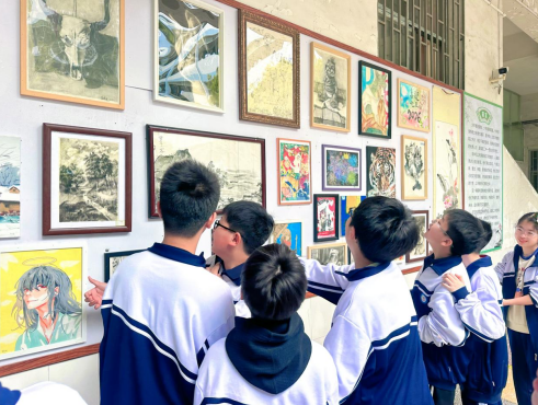 课间时分,展区前总是围满了学生。他们或三五成群,低声品评;或独自凝神,细细揣摩。孩子们眼中闪烁的光芒,比画作本身更动人。