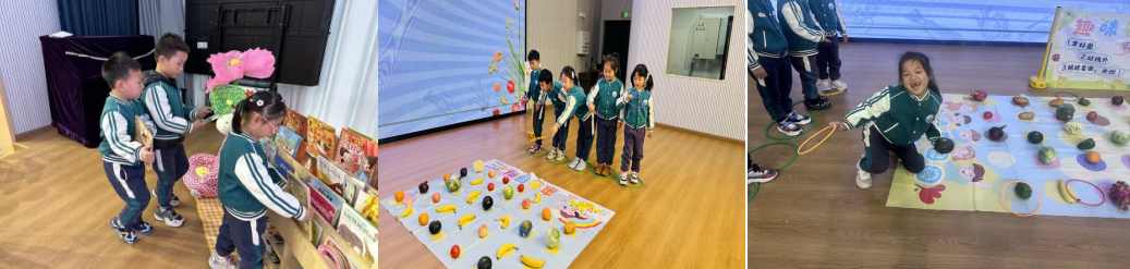 翠绿的青菜、饱满的萝卜、鲜嫩的果蔬整齐排列,孩子们踮脚、瞄准、投掷,一个个套圈在空中划出灵动弧线。每一次成功套中,都引来阵阵欢呼,孩子们脸上洋溢着收获的喜悦,在趣味互动中体会分享的快乐,感受付出的美好。活动尾声,孩子们手捧新鲜蔬果合影留念,用镜头定格书香与蔬香交融的温暖瞬间。
