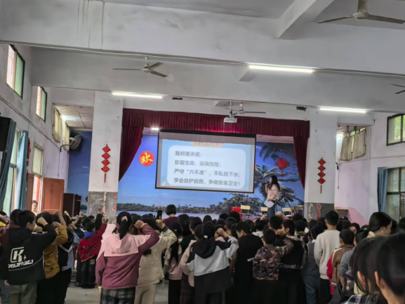 本次活动形式丰富多样,学校在升旗仪式上组织全体学生集中观看防溺水教育警示片,用真实案例敲响安全警钟,让学生深刻认识到溺水的严重危害;随后举行庄严的防溺水宣誓仪式,学生们郑重许下安全承诺,牢记防溺水准则;同时,全校师生共同学唱防溺水安全歌,以轻松易懂的方式牢记安全知识。此外,各班还同步开展防溺水主题班会,进一步普及防溺水常识,强化学生自我保护意识。