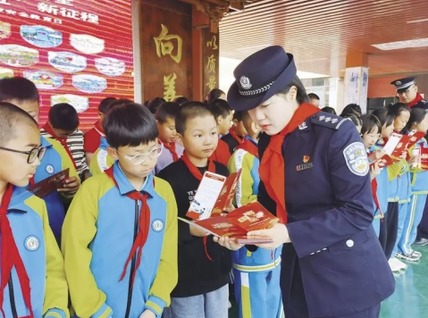 4月14日,在第11个全民国家安全教育日来临之际,兰州出入境边防检查站民警走进兰州新区第三小学开展普法宣传活动。