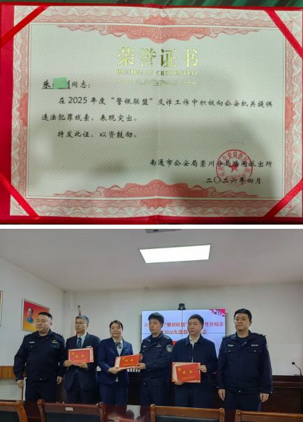 本网江苏讯(通讯员 钱丽丽)2026 年 4 月 17 日,南通建行港闸横河路支行营运主管朱海洲,因在 2025 年度警银联盟反诈专项工作中主动履职、积极作为,及时向公安机关精准提供违法犯罪线索,反诈成效突出,正式荣获南通市见义勇为基金会表彰颁奖。