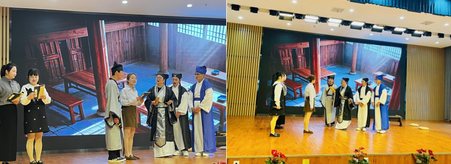 活动尾声,青年教师自编自演的情景剧《传承》精彩上演。老师们以跨越时空的古今对话,生动演绎教育初心的代代相传、育人使命的接续奋斗,真挚情感与鲜活表演点燃全场氛围,充分展现海滨幼教人不忘初心、砥砺前行的坚定信念。
