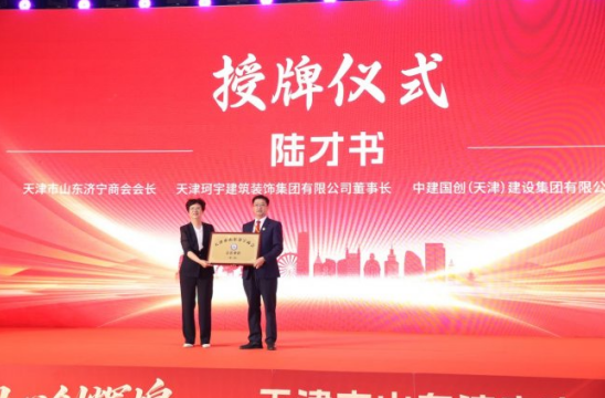 天津市山东济宁商会会长陆才书为理事单位颁牌