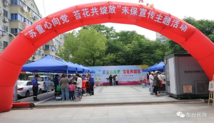 本网江苏讯 为迎接“六一”儿童节,强化未成年人权益保护宣传,营造关心关爱未成年人成长的良好氛围,5月28日上午,江苏省东台市民政局联合市检察院、市妇联、东台镇等单位举办了“苏童心向党 苔花共绽放”为主题的未成年人保护宣传活动。